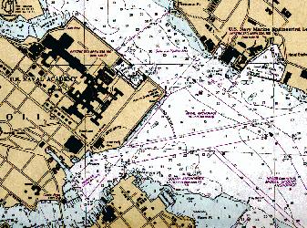 Navy ships into the Chesapeake. The Navy ships along the banks for the river are