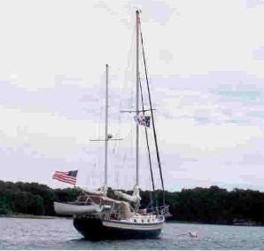 tall ship the BLUE MOON under shorten sail doing 3 knots. "Wandering Star" on